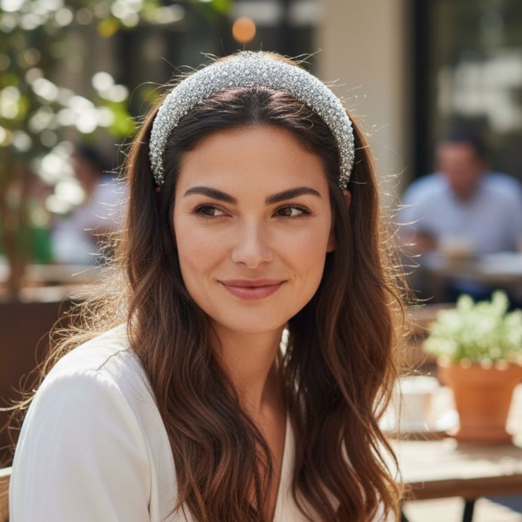 Cordeluta cu volum nivel mediu, pentru iubitoarele nuantelor argintii. Bentita este confortabila si usoara,