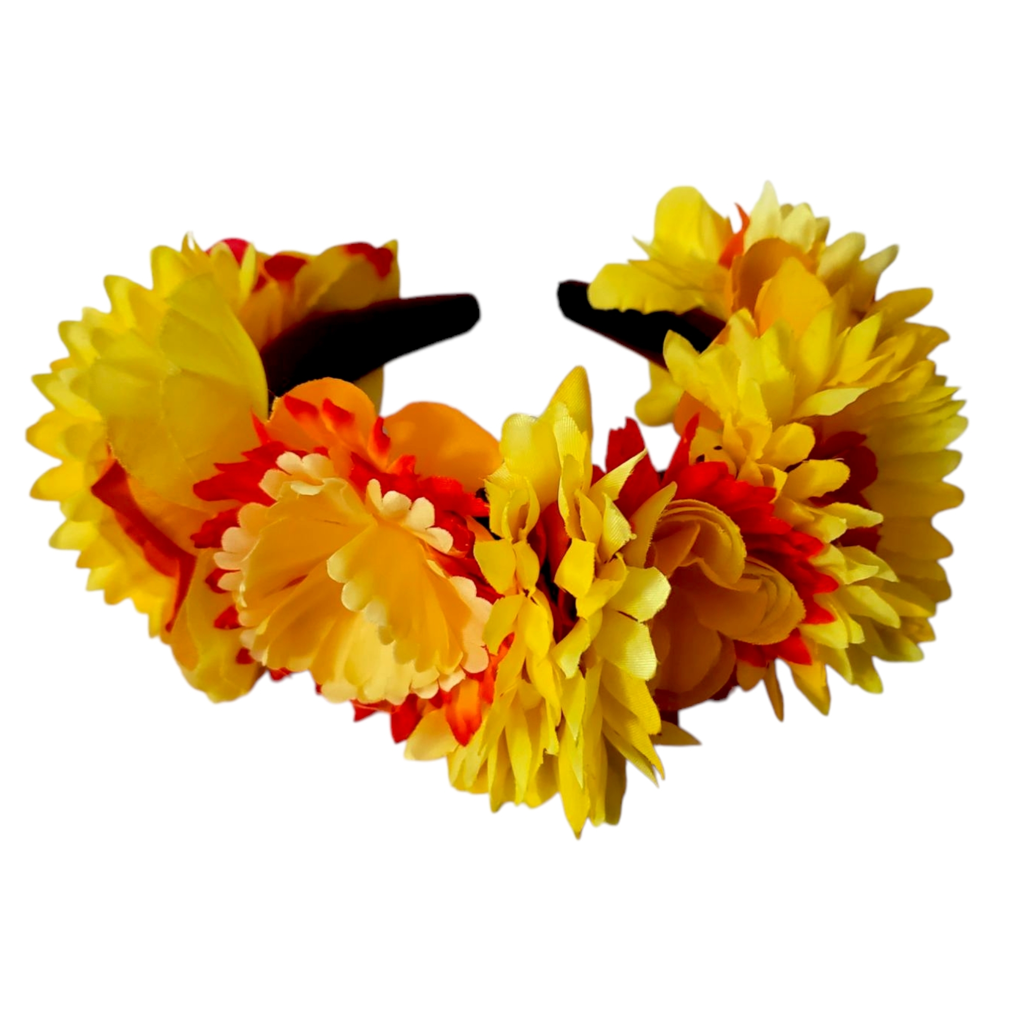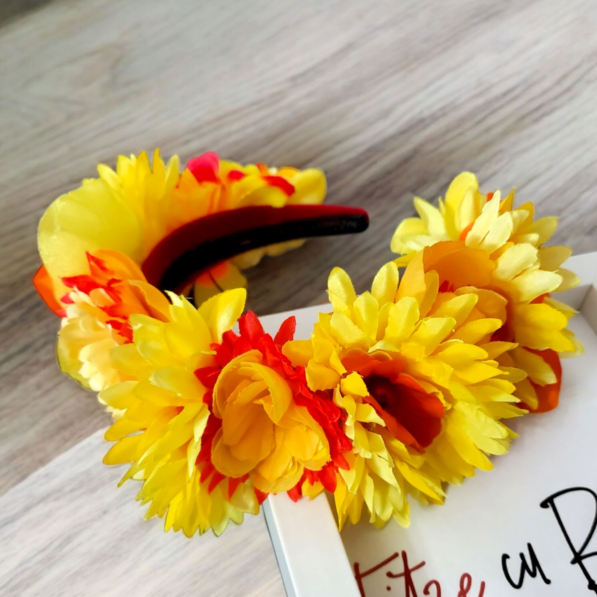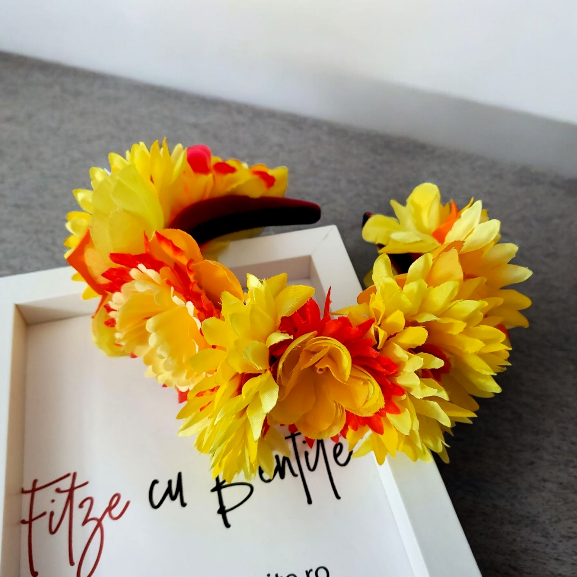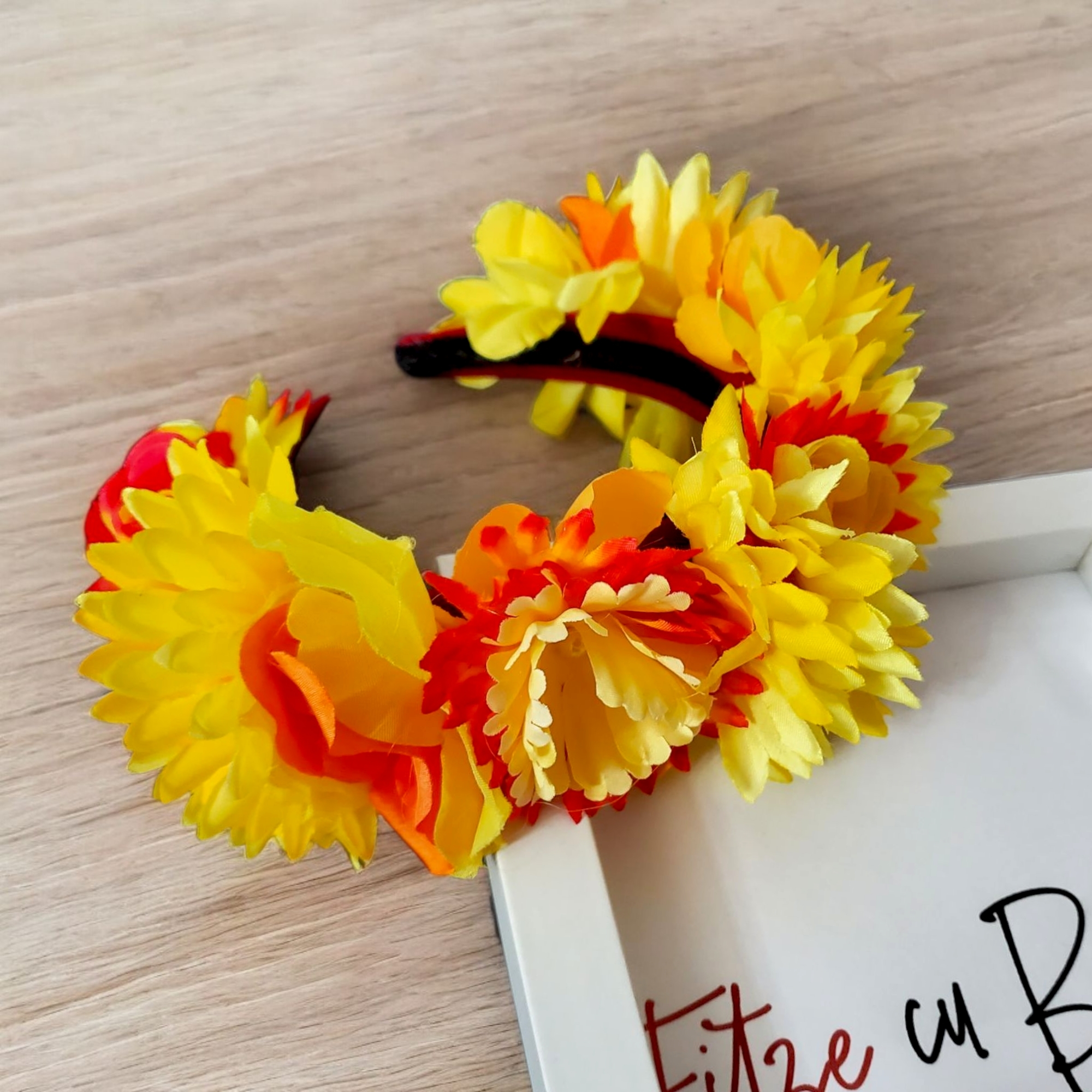 Descoperă farmecul unei veri eterne cu Bentita cu flori Divine! Realizată manual din materiale fine, cu flori galbene și portocalii și perle delicate, această bentită unică aduce un strop de magie oricărei ținute. Confortabilă, stabilă și universală, transformă-ți coafura în poveste!