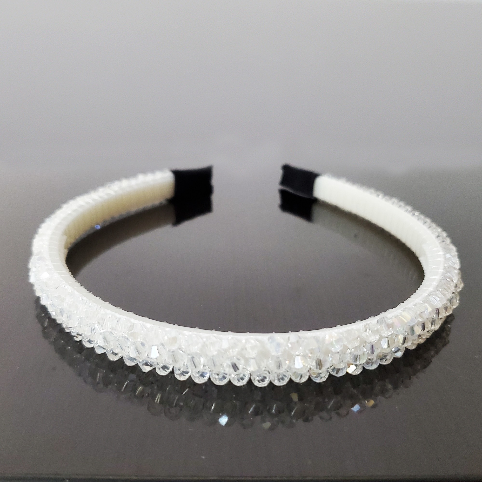 Transformă-ți coafura într-o poveste strălucitoare cu bentita Glitter, decorată doar cu cristale de sticlă transparente. Cu pieptăn interior pentru fixare sigură și disponibilă în culori variate, adaugă rafinament și eleganță oricărui look, indiferent de ocazie.