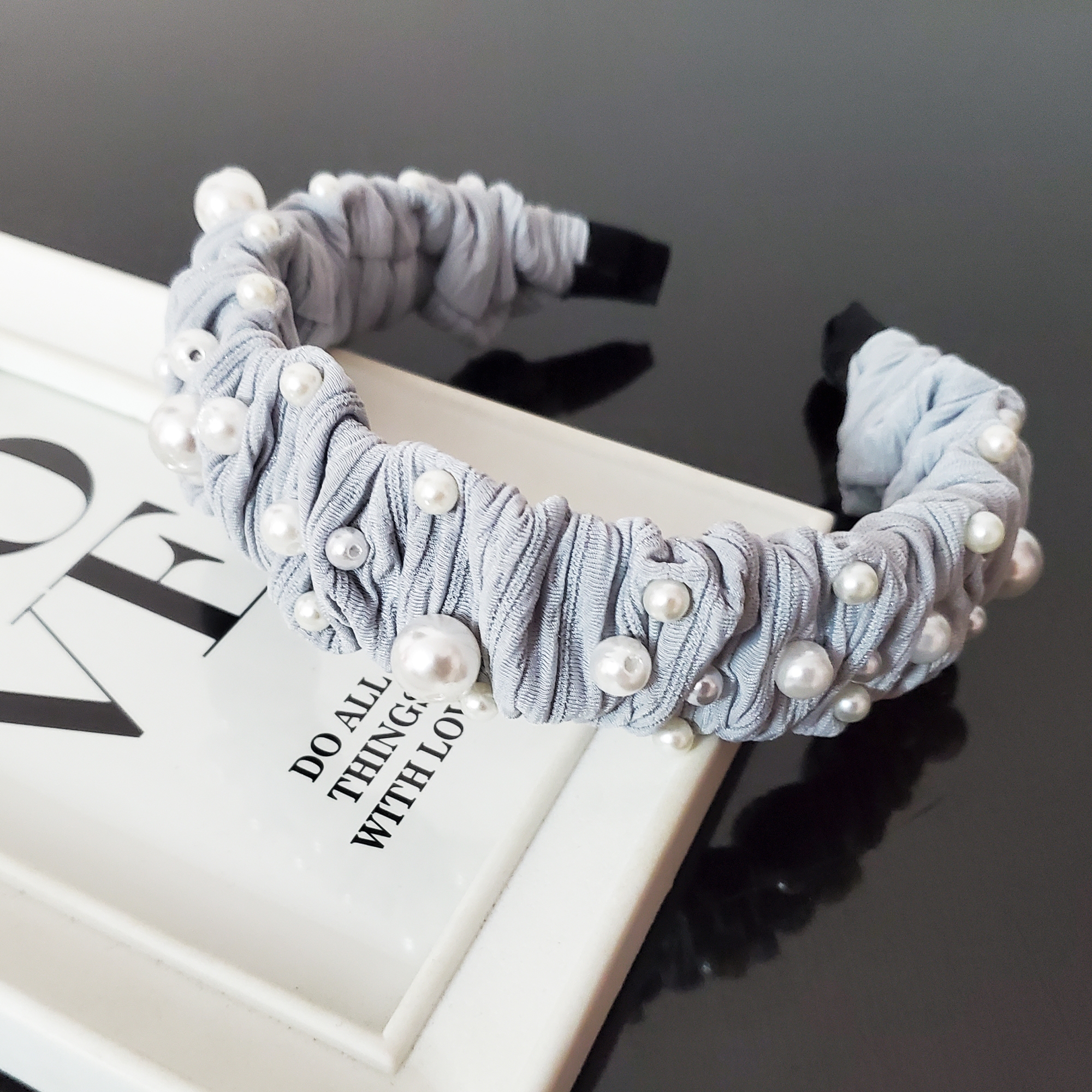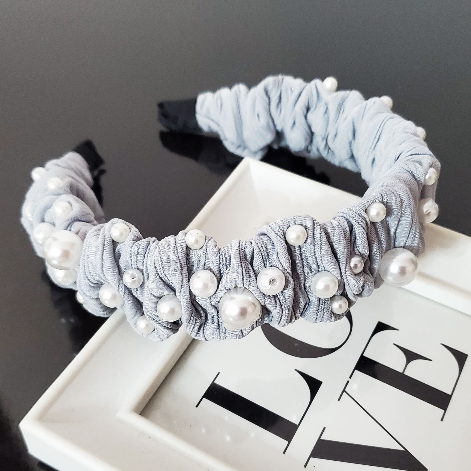 Bentita Helena nu este doar un accesoriu, ci un statement de feminitate și distincție. Fiecare perlă cusută manual spune o poveste despre atenția la detalii și pasiunea pentru frumos. Materialul textil delicat, accentuat de firul argintiu, adaugă o notă subtilă de strălucire, perfect echilibrată de designul cu pliuri și perle.
