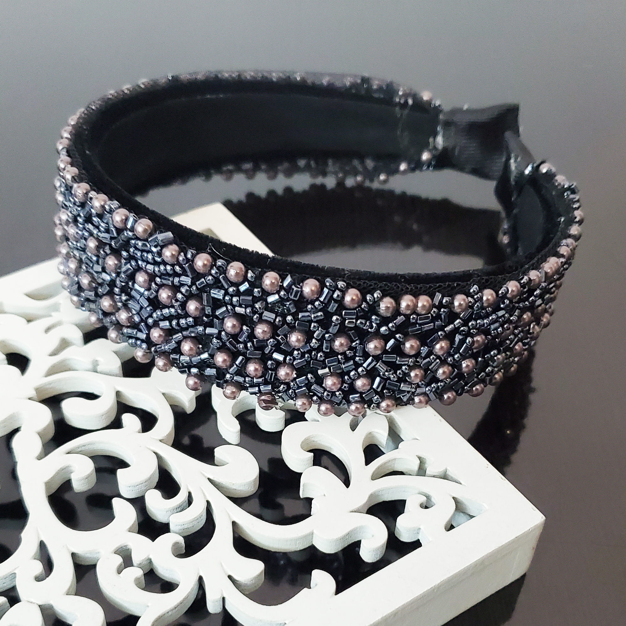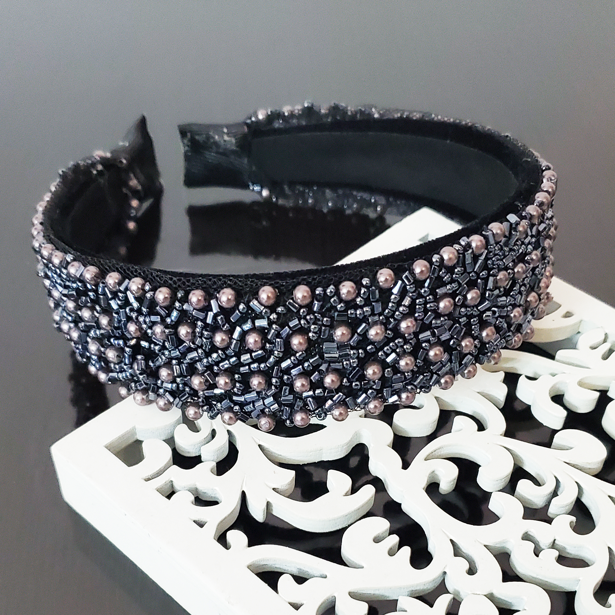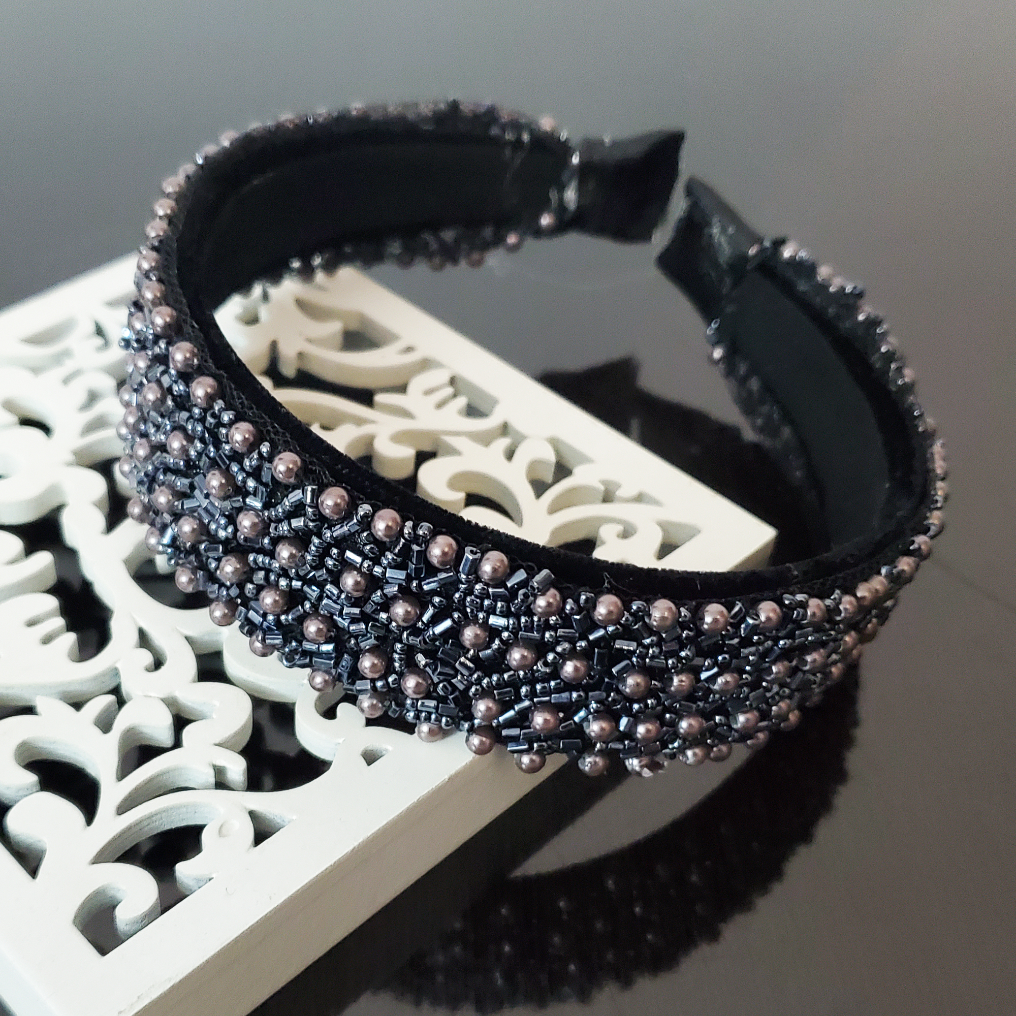 Bentita Inna nu este doar un accesoriu, ci o declarație de stil și feminitate. Catifeaua fină mângâie delicat părul și nu lasă urme, oferindu-ți confort pe tot parcursul zilei. Perlele crem și mărgeluțele japoneze fumurii, lucrate manual cu atenție, adaugă o notă subtilă de lux și rafinament, făcând din fiecare apariție una memorabilă.