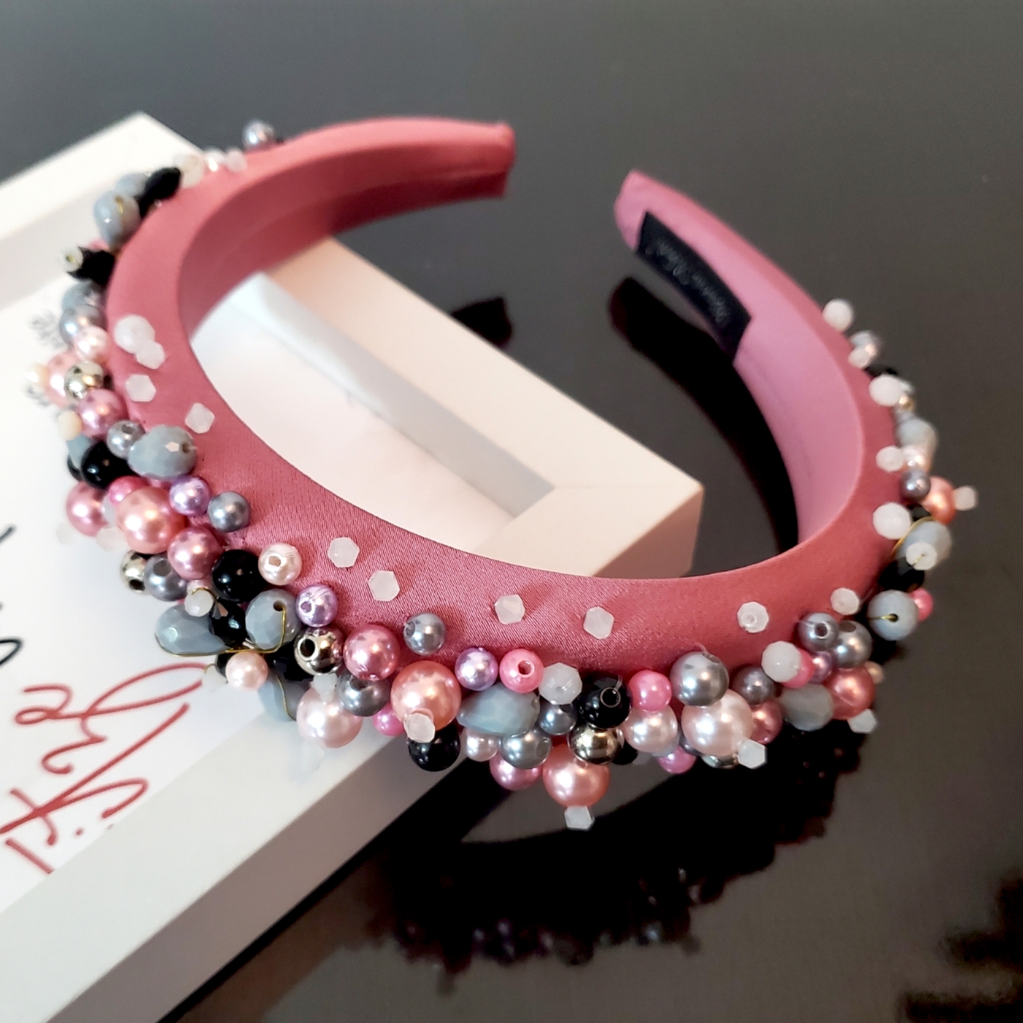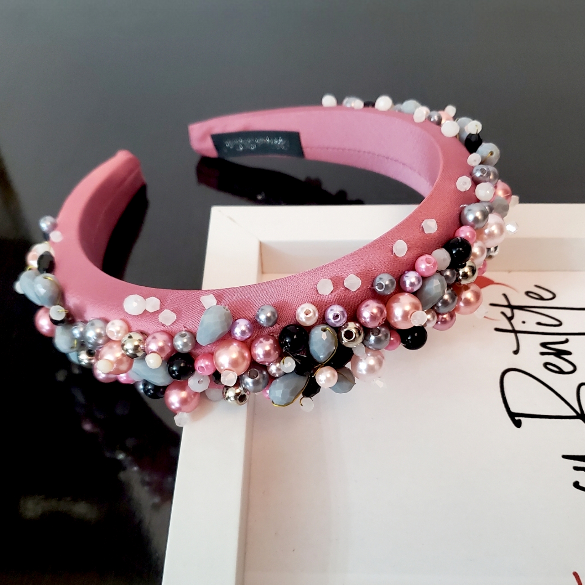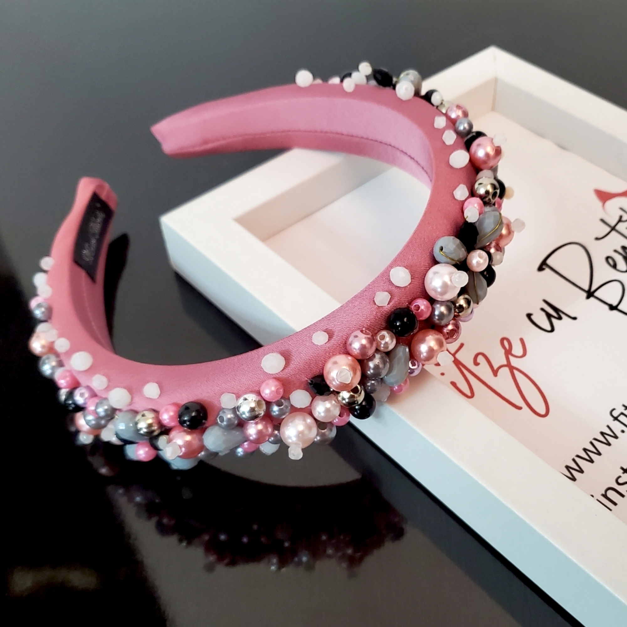 Bentita eleganta cu perle si cristale in nuante de roz, gri, negru. Cordelutele sunt accesorii clasice must have si vor evidentia intotdeauna tinuta si machiajul tau. Spor la fitze!