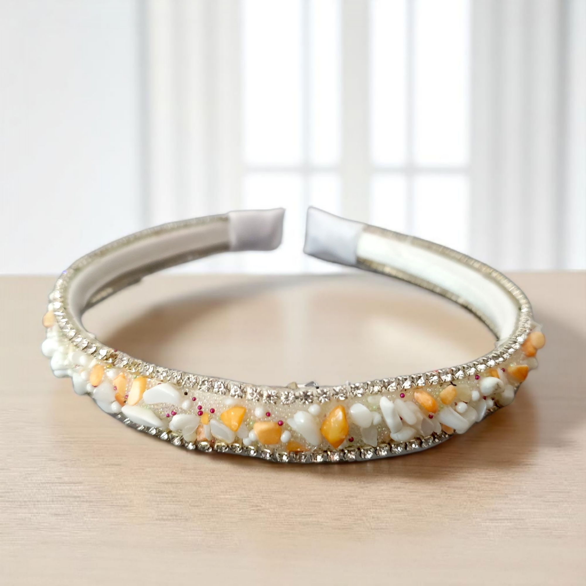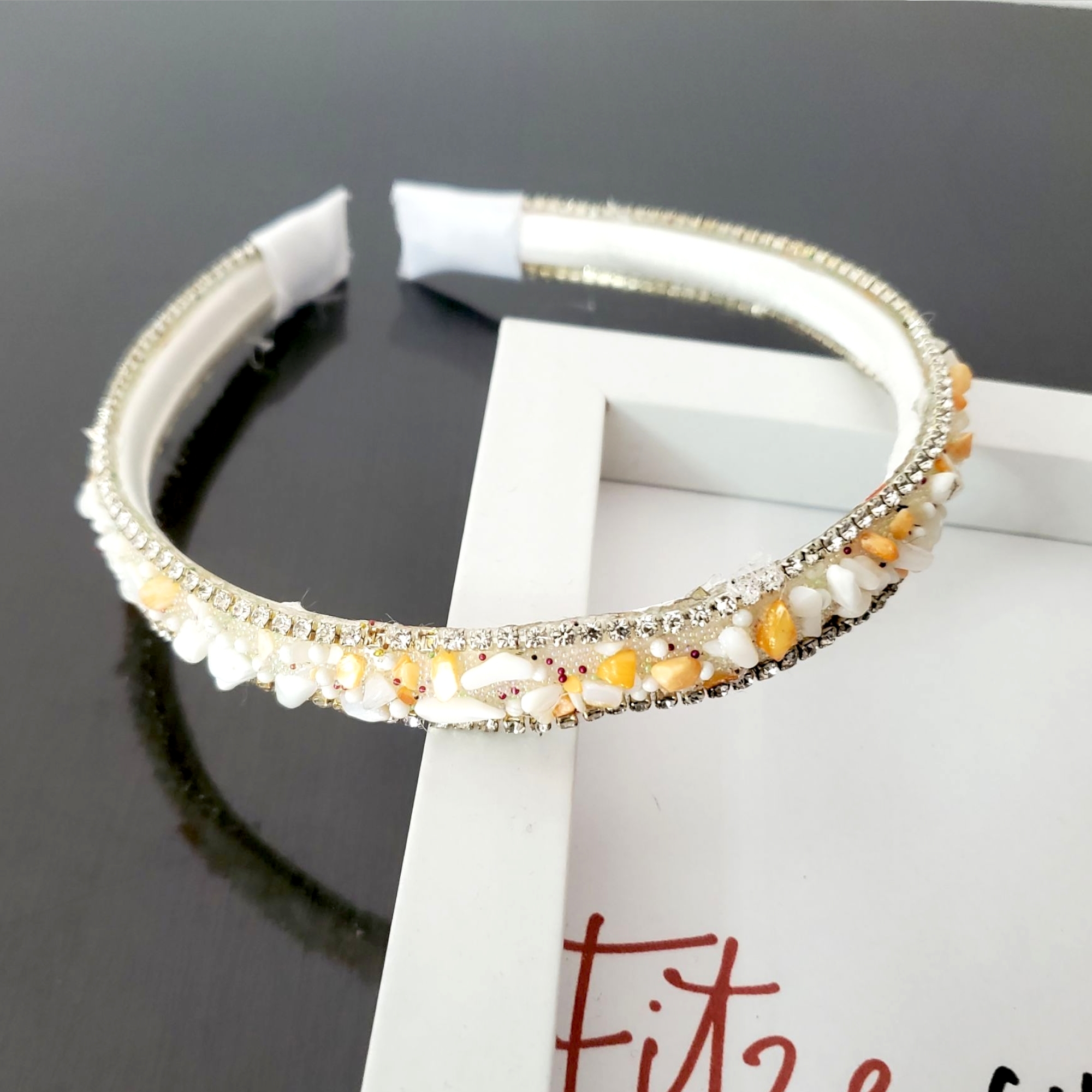 Descoperă Bentita Twist albă, accesoriul care îți completează orice ținută – de la office la elegant. Realizată pe suport alb îngust, cu strasuri și pietre naturale, nu alunecă și nu jenează. Poart-o cu încredere pentru un look sofisticat, fără compromis la confort!