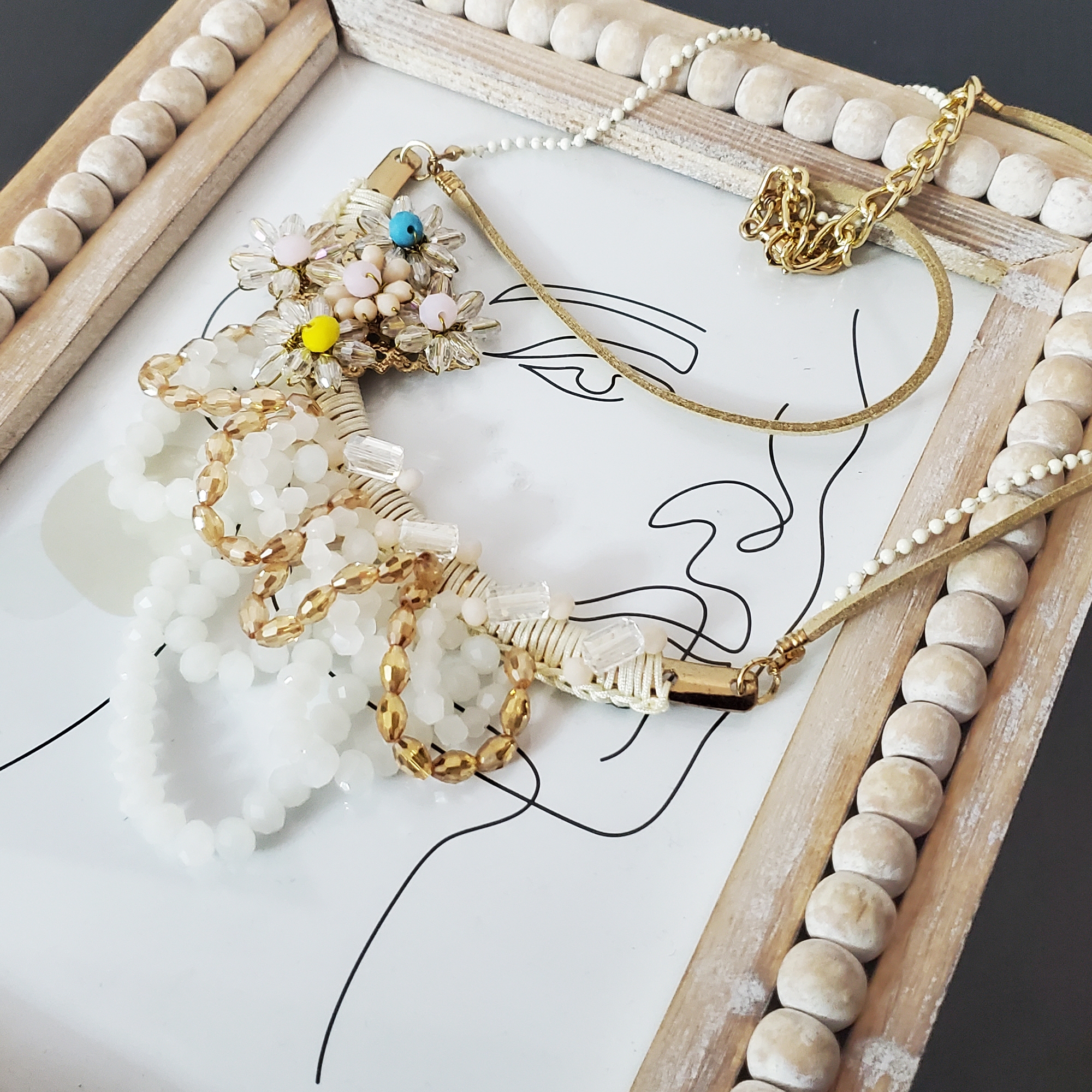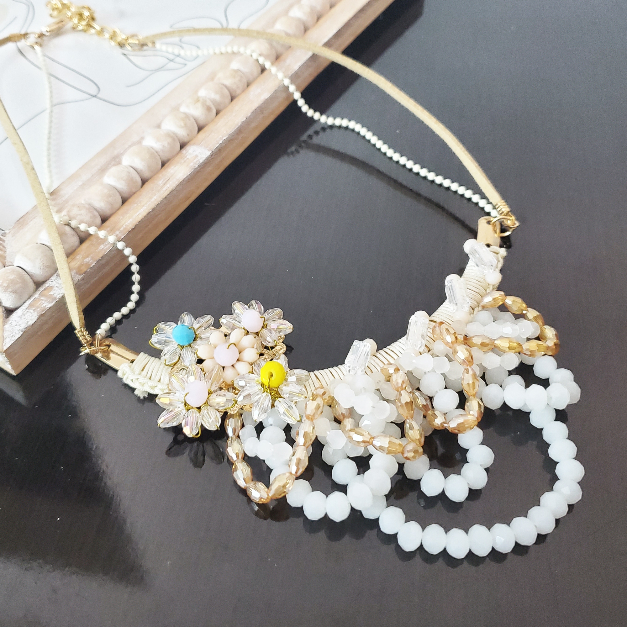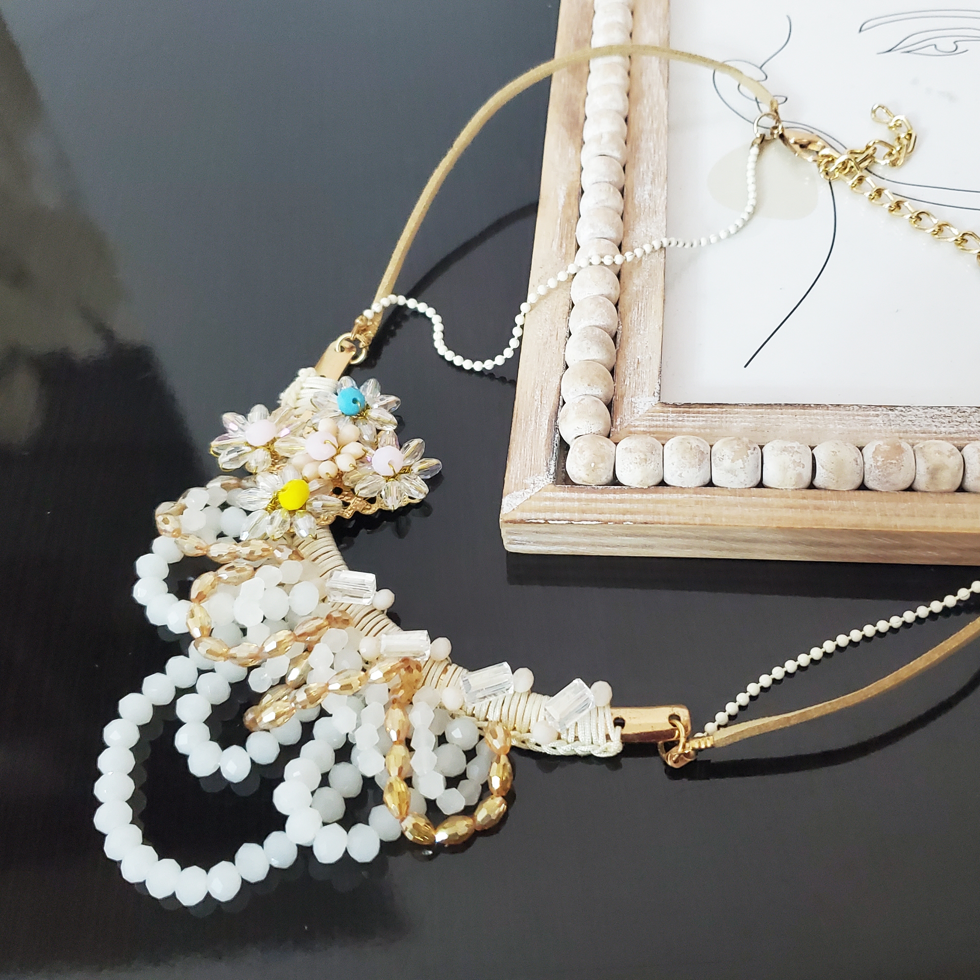 Descoperă farmecul subtil al colierului Romantic Cream: cristale fațetate în nuanțe de crem și alb, flori delicate, design versatil pentru birou sau ocazii speciale. Reglabil, confortabil, transformă orice ținută într-o poveste elegantă. Alege rafinamentul care te pune în valoare!